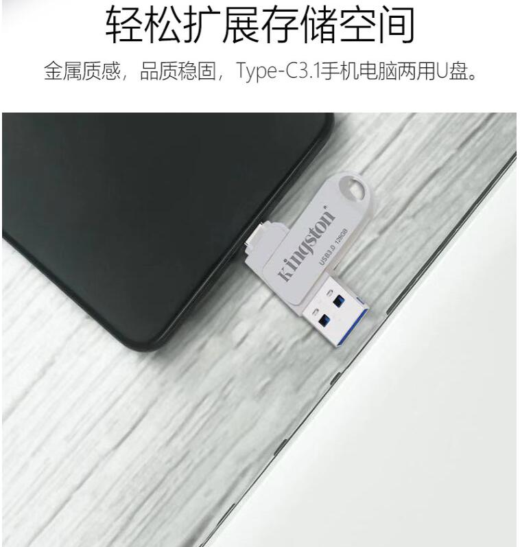 金士頓Type-c手機(jī)電腦兩用U盤128G高速USB3.1華為小米安卓OTG優(yōu)盤